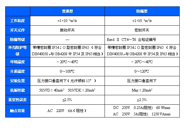 505/7D防爆壓力開關用于含油霧的中性氣體。